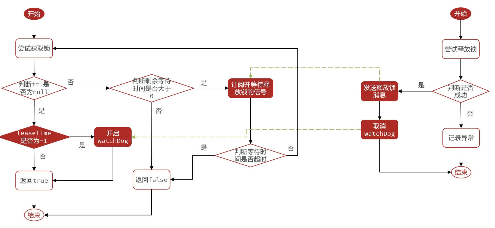 Redisson的可阻塞锁是基于Redis的发布订阅模式来实现等待,唤醒,获取锁失败的重试机制的