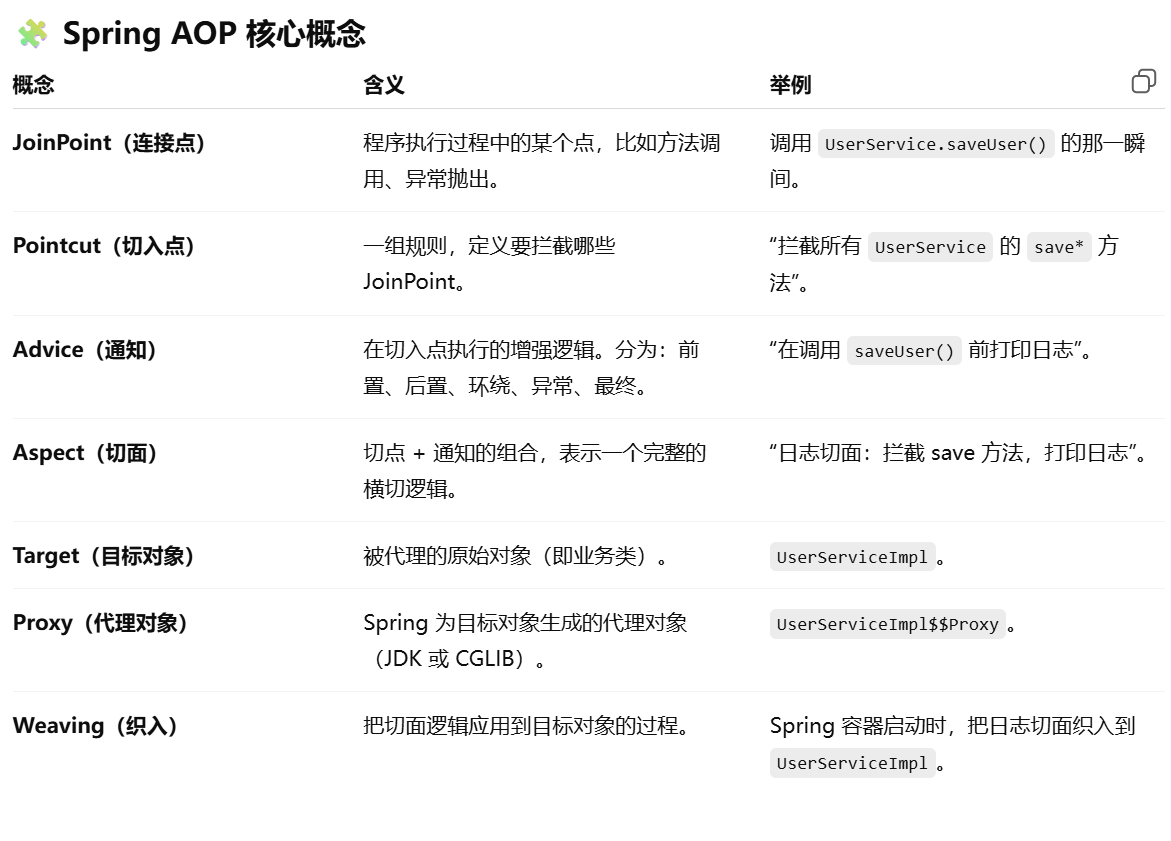 AOP即面向切面编程,是一种思想,是对OOP的补充。简单的来说就是把公共的逻辑抽离出来,