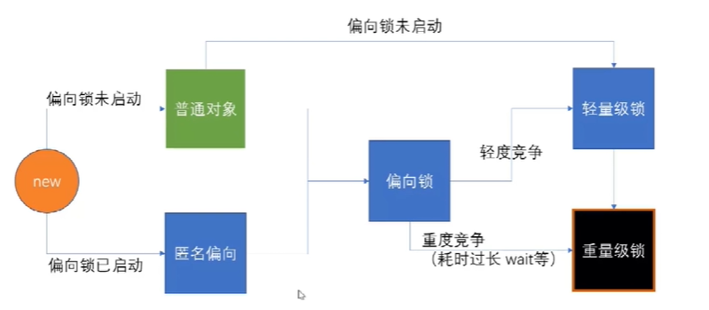 当另外一个线程获取非匿名偏向锁时,偏向锁就会被撤销,锁就会自动升级为轻量级锁