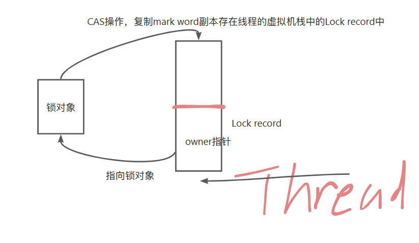 然后尝试通过CAS操作将对象头的mark word更新为指向锁记录的指针