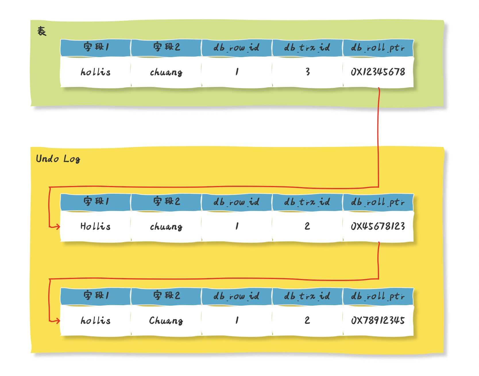 2.undo log版本链:记录的是事务变更前的数据