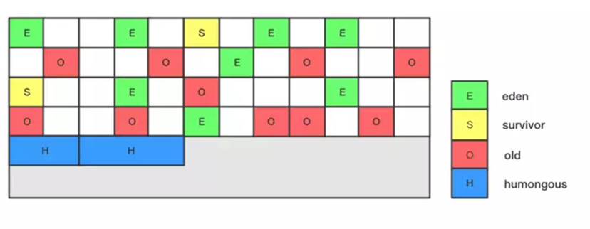 H区??:用来存放大对象,如果对象超过1.5region,就会放到这里