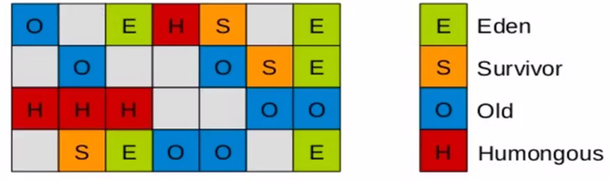 物理不分代:将堆分为不同的region