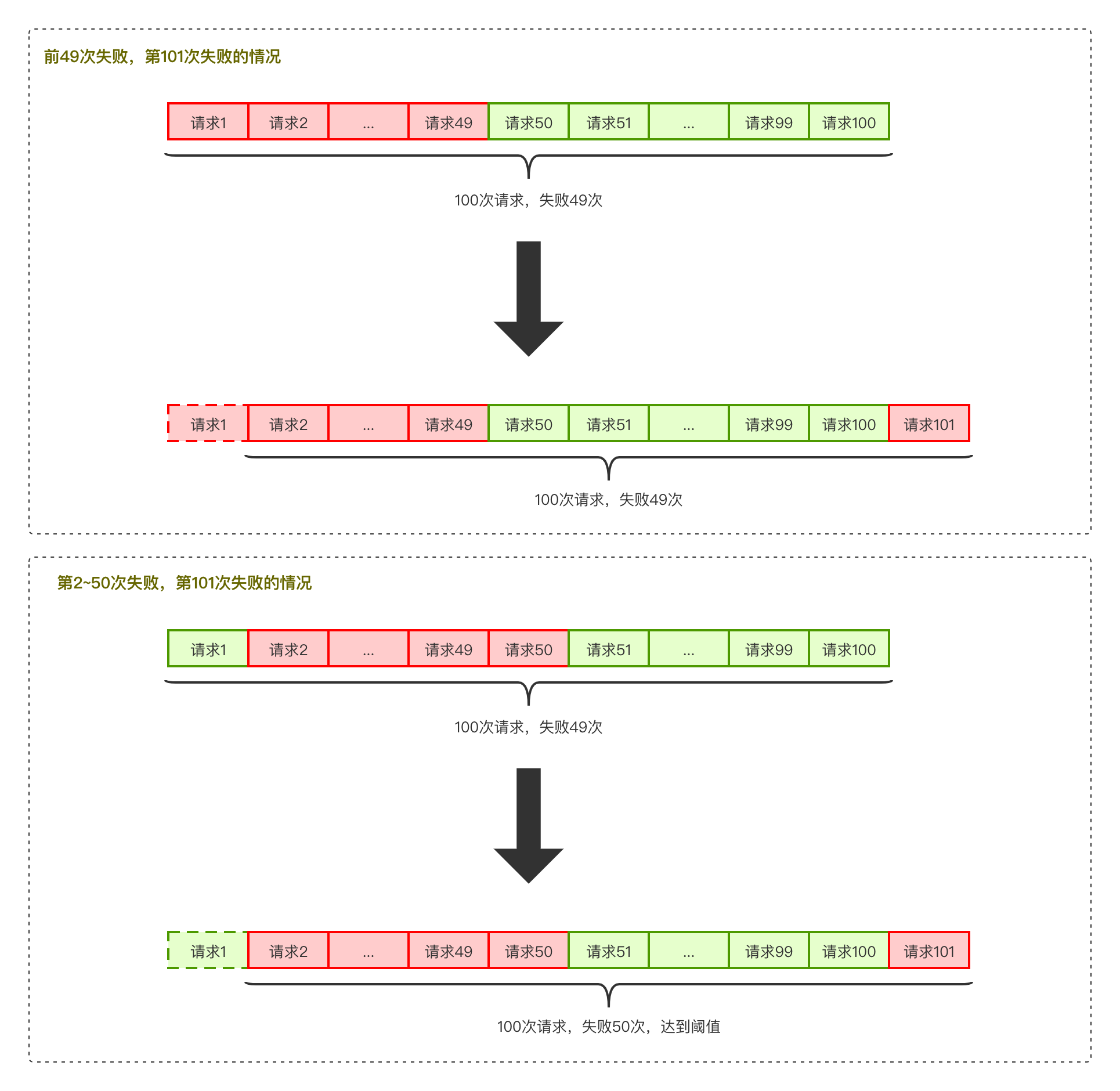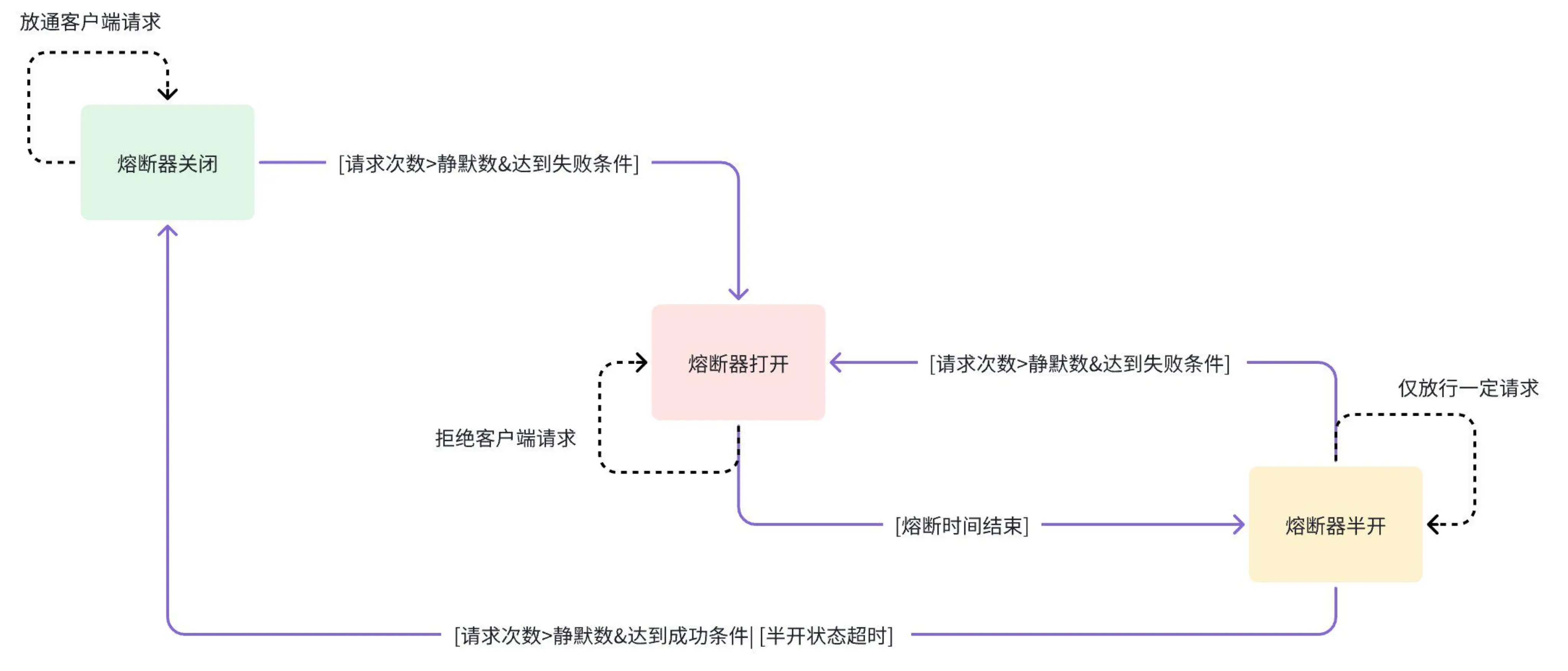 - 静默数机制:引入静默数概念,防止少量请求触发状态切换。只有当请求数量达到静默数且失败率达到阈值时,才会切换至打开状态。