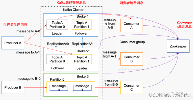 Zookeeper:kafka集群依赖zookeeper来保存集群的的元信息,来保证系统的可用性。