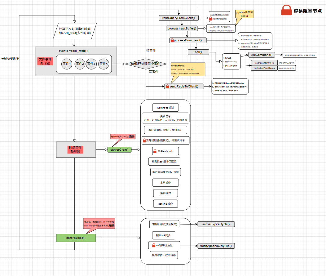 由上图可以看到,Redis从整体来看其实就是一个while死循环
