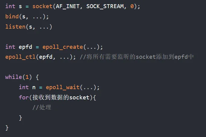 - select:底层采用数组,最多监听1024个fd,即1024个数据来源。会将已连接的socket存放到文件描述符集合中。然后for(Socket socket:Sockets){ if(socket.isOk()) {开始处理事件}} 。如果for循环之后没有满足条件的Socket,那么内核将进行休眠。当设备驱动发生自身资源可读写后,会唤醒其等待队列上睡眠的内核进程,即在socket可读写时唤醒,或者在超时后唤醒。当检测有事件产生时,将此Socket标记为可读可写,接着将整个集合拷贝回用户态,应用程序再对其进行遍历找到可读or可写的Socket,然后对其进行处理。处理完数据后继续调用select对其进行监听,而此时又要重新设置一遍集合(读,写,异常事件集合,三个集合)