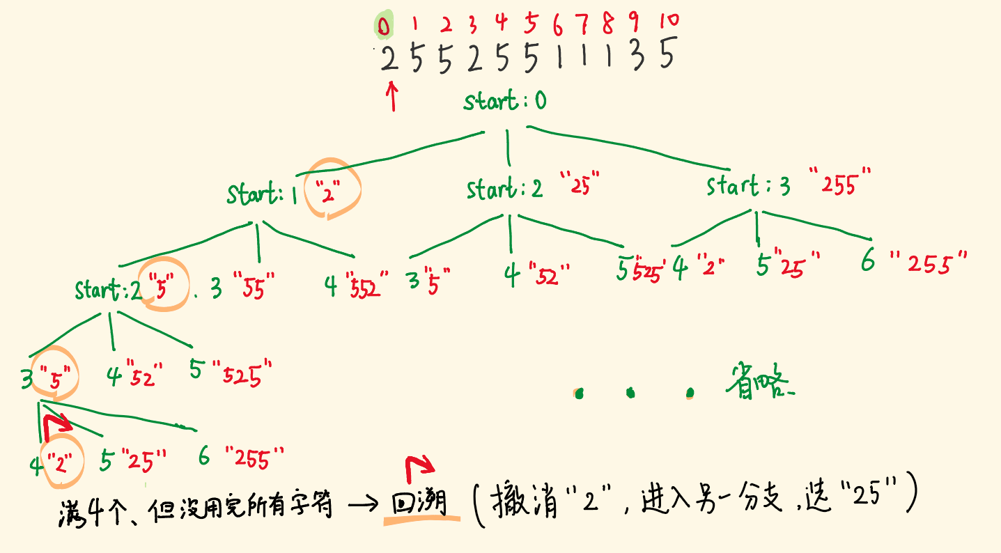 - 以 “25525511135” 为例,第一步时我们有几种选择?