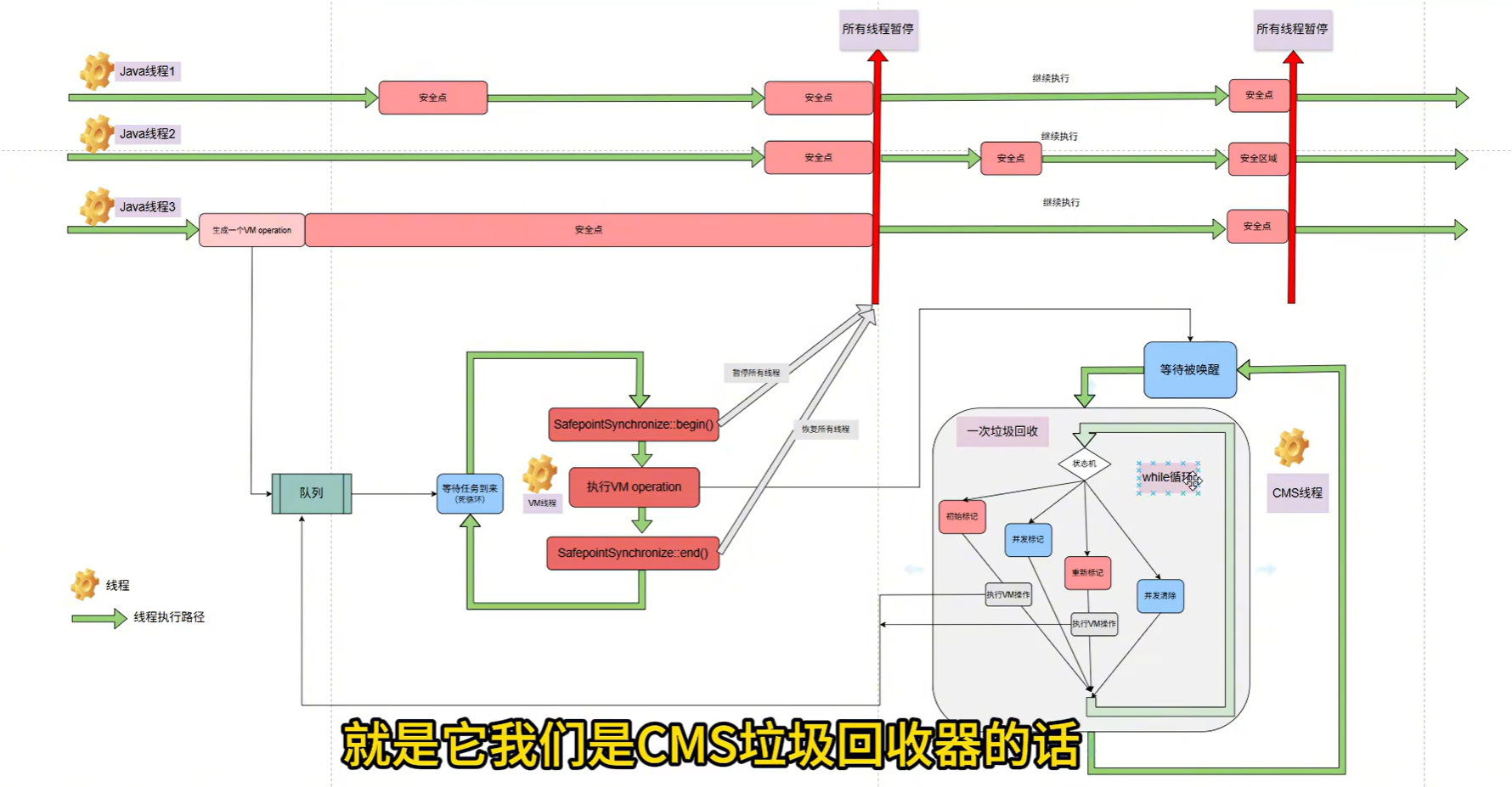 cms垃圾回收流程 发表于 2025-09-13 分类于 JVM , jvm源码 阅读次数: 安全点 Safe point: 安全点是 JVM 在字节码执行中预设的“安全停车点”,只有线程到达这些位置才能被安全地暂停,用于 GC 等全局操作,保证程序状态一致性 初次标记–>并发标记—>重新标记