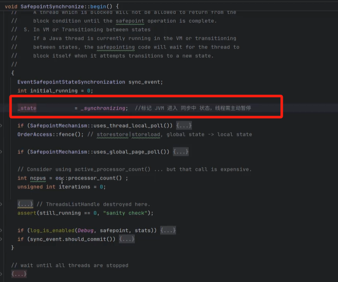 begin:该标志位,通知其他线程暂停下来,而且得等所有线程都听下来,才能继续执行begin方法剩余的逻