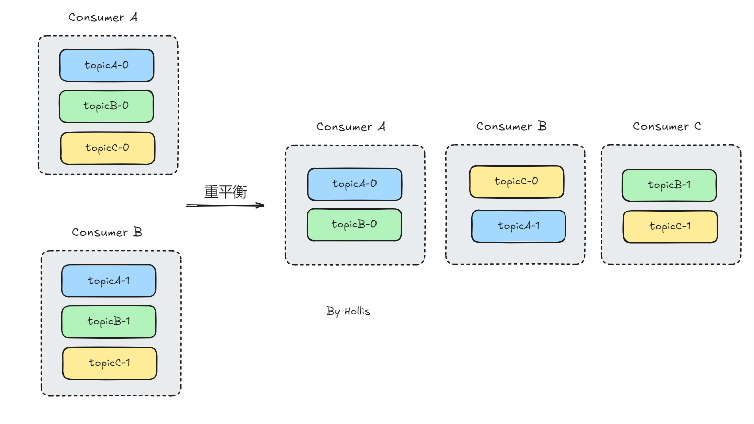 它是指当我们的Consumer数量发生变动时,kafka会重新分配topic partition给Consumer,以保证每个
