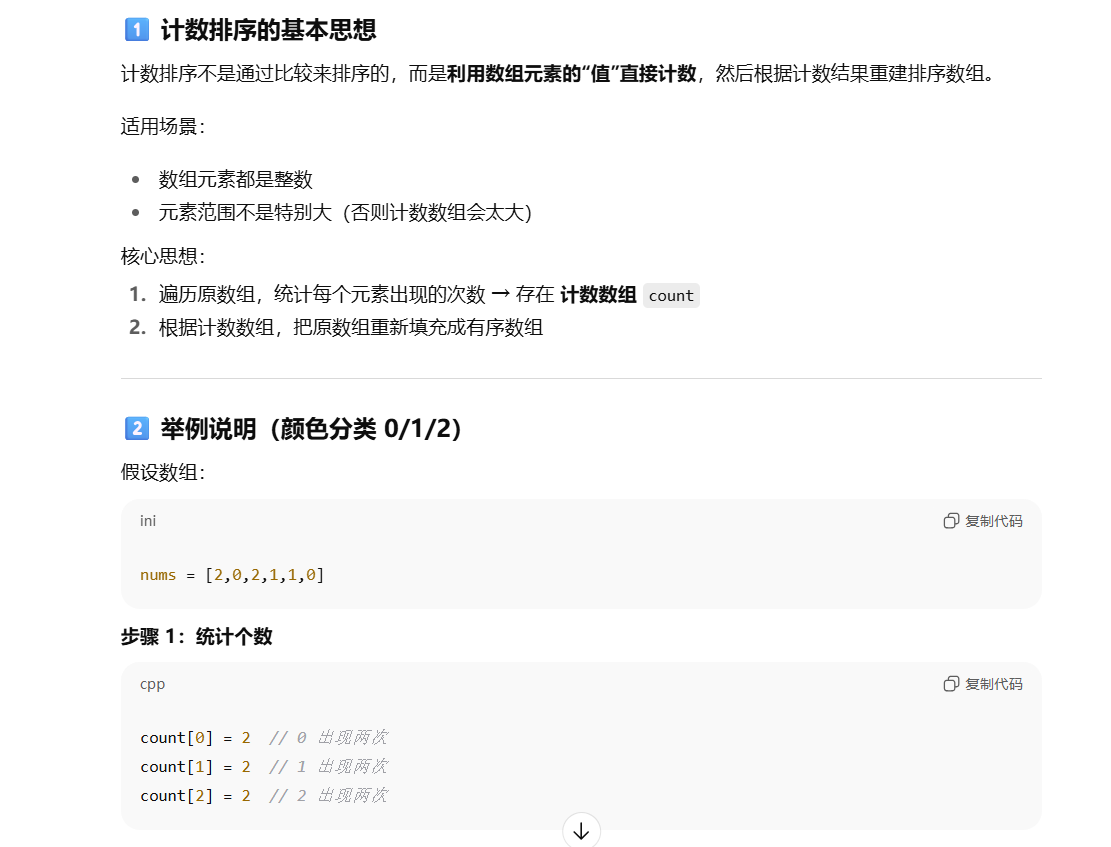- 题目特殊性,时间复杂度为O(N)的解法,采用计数排序