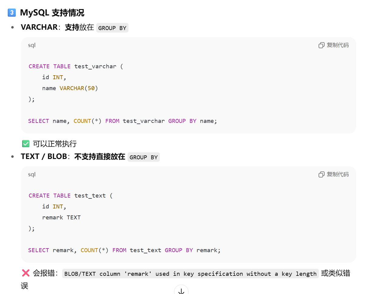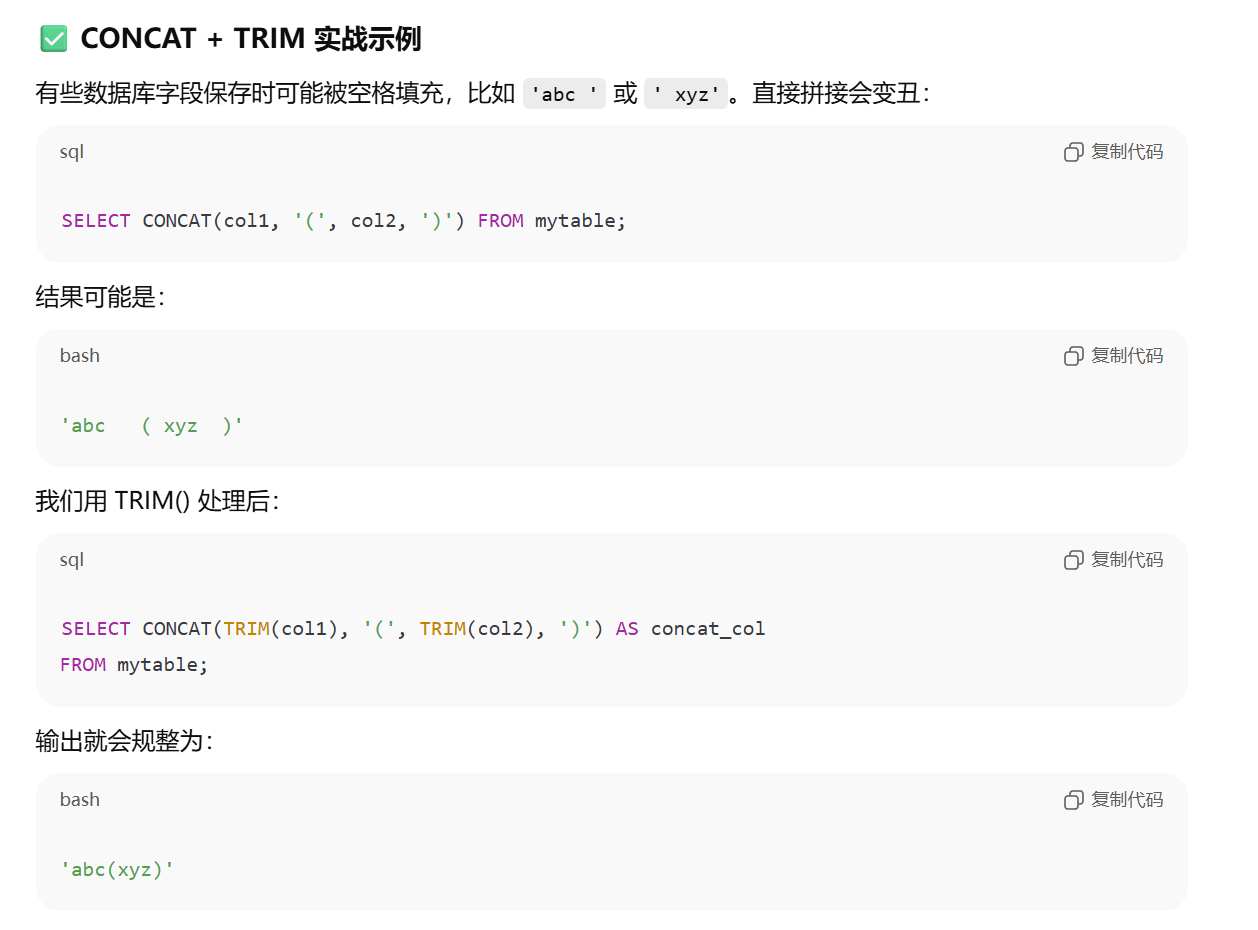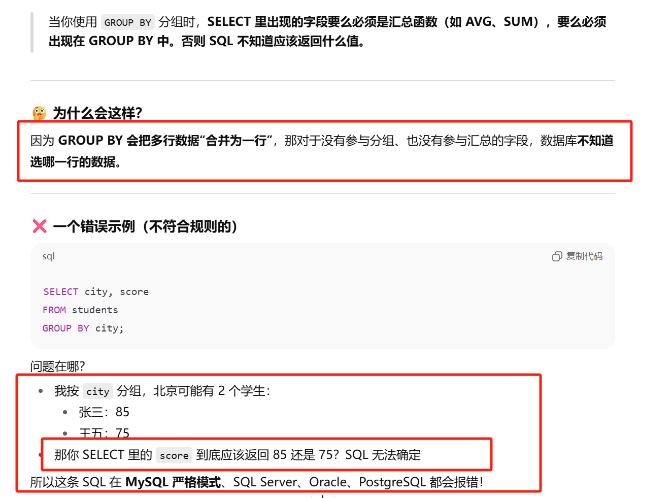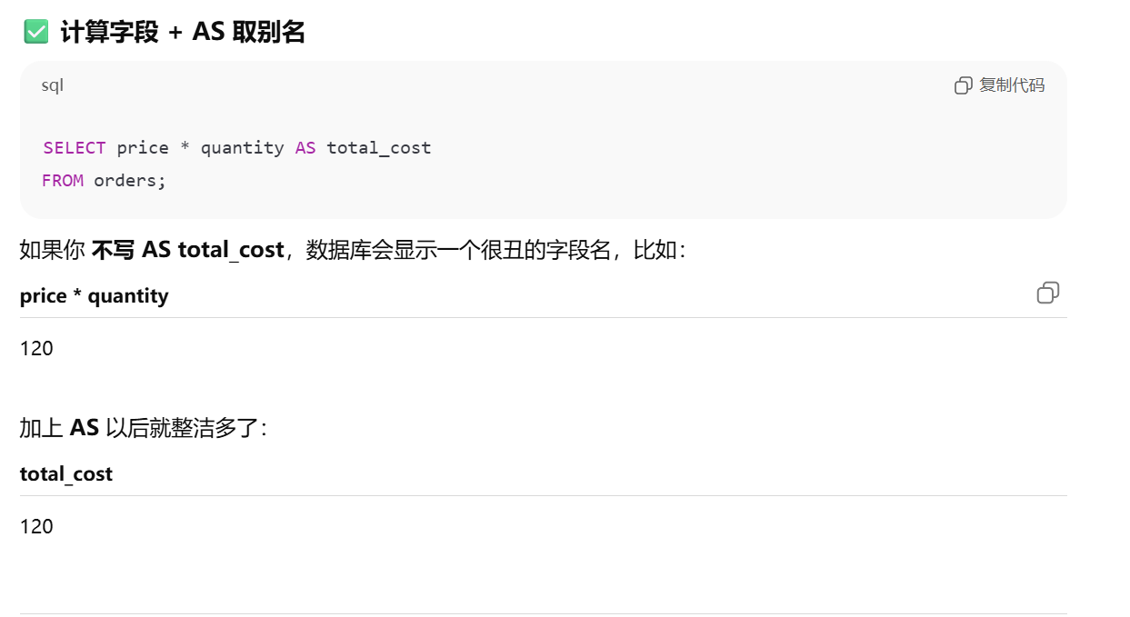 | 汇总函数 | 作用 | 示例 SQL | 示例结果 |