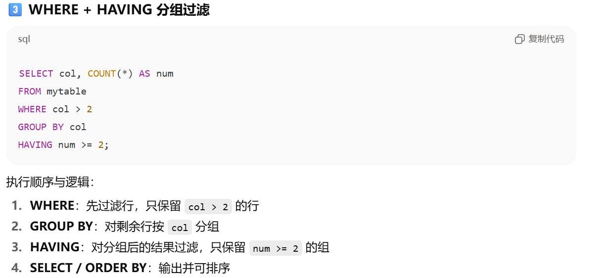 | 排序 / 排名 | ROW_NUMBER(), RANK(), DENSE_RANK() |